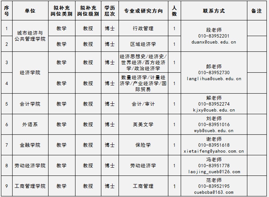 首都经济贸易大学2013年高层次人才需求